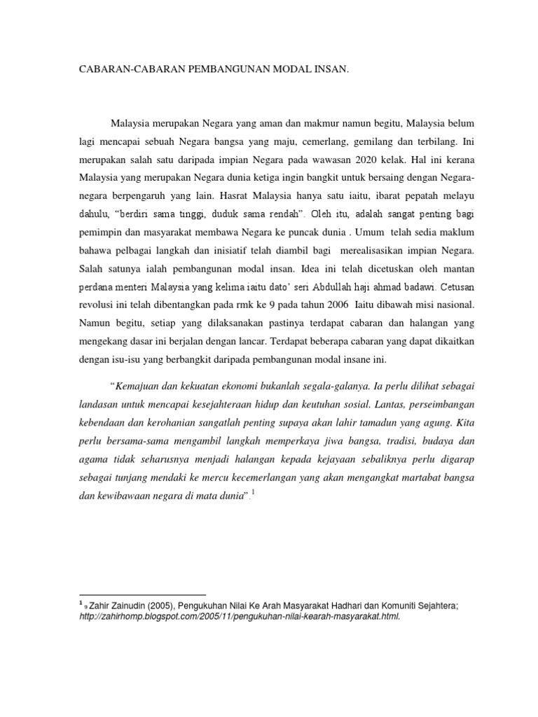 Cabaran pembangunan modal insan di malaysia. Isu dan cabaran as want to read Sejak kebelakangan ini kes pelanggaran disiplin para pelajar sering menjadi tajuk utama di dada. Cabarandalamindustri air meningkatkan partisipasi awam dalam mengangkasakan industri air ir hj mohmad asari daud setiausaha majlis profesional air & teknologi hijau (proatek). Cabaran pembangunan modal insan di malaysia.
