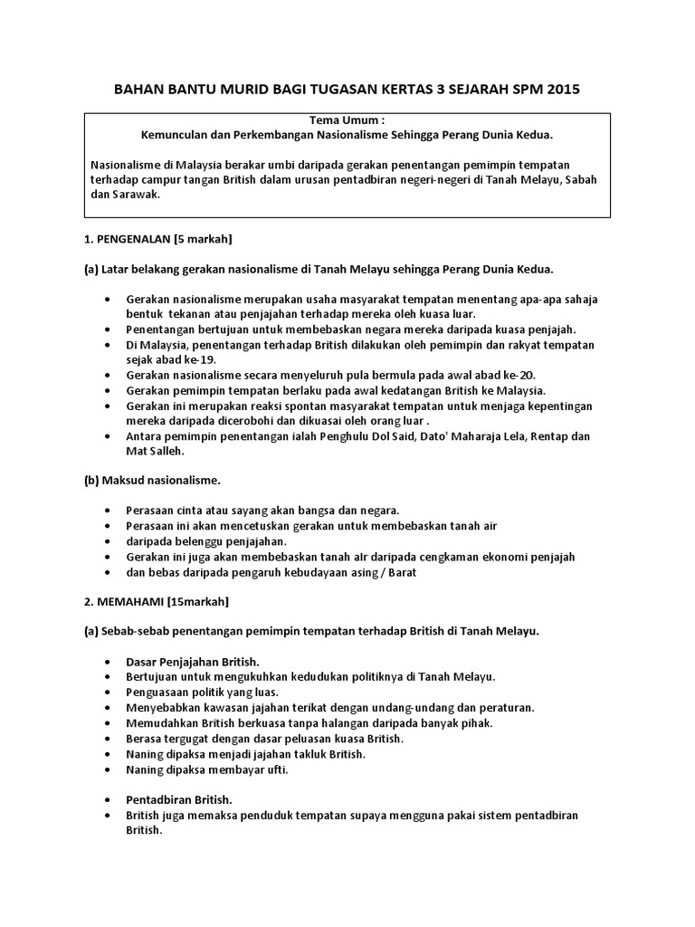Bahan nota nota rujukan sejarah kertas 3. Kertas 3 sejarah spm pages. Contoh soalan dan skema markah nasionalisme di malaysia sehingga perang dunia kedua (tingkatan 5 bab 2) soalan : Kertas 3 sejarah spm 2013 2 1 tanah melayu selepas kekalahan jepun tanah melayu dikuasai pkm selama 14 hari.